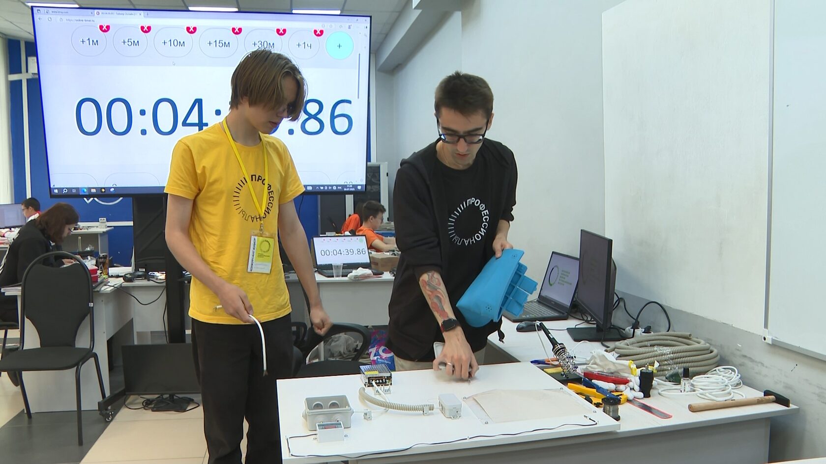 Максим Соколовский, участник межрегионального этапа Чемпионата высоких технологий в категории «юниоры»: «Если модуль Б заключается в написании программы, то в модуле В нужна и пайка, и умение закручивать винты, гайки быстро, потому что очень мало времени на это уделяется. Мы монтируем схему для обогрева улья. Также надо быть очень внимательным, потому что очень много разных мелочей, в которых можно ошибиться».